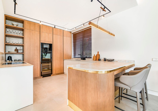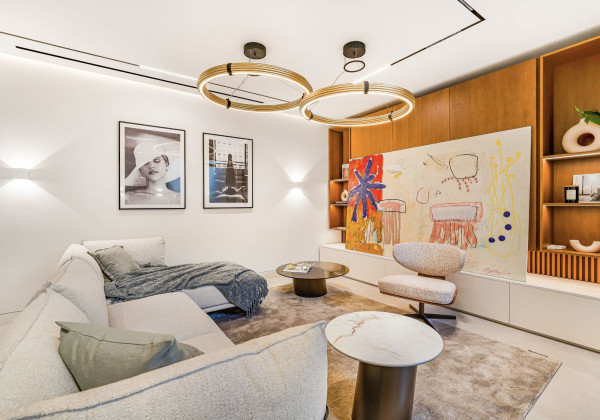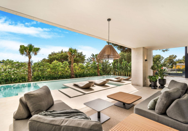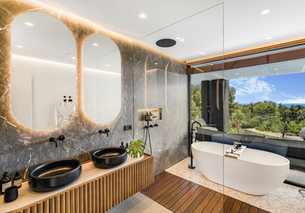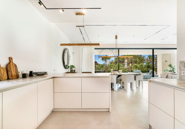 With a total built area of 813 m² on a plot of 1,050 m², this villa has been meticulously designed with top-quality materials and large windows that harmoniously connect the interiors with the natural surroundings. Majestic pine trees on the property create a unique and tranquil Mediterranean atmosphere.