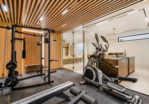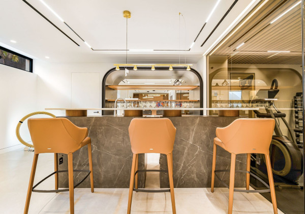 The basement is a luxurious sanctuary equipped with a Finnish sauna, gym, a large additional bedroom, storage room, home cinema, guest toilet, TV area, and a uniquely designed bar. Furniture and carpets supplied by prestigious Italian brands such as "Bonaldo", "Ditre", and "Talenti" enhance the villa's elegance and comfort.