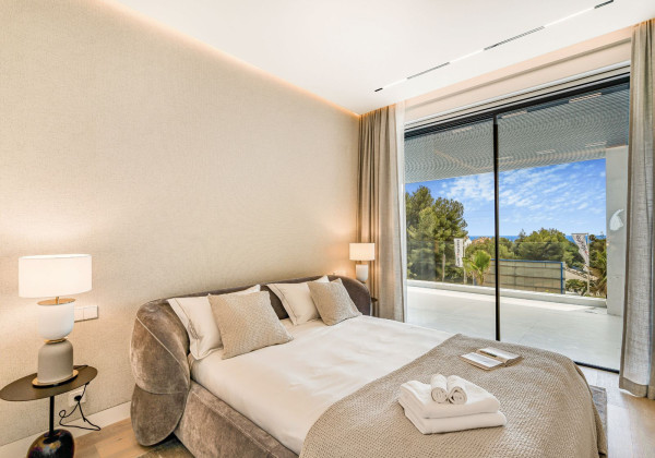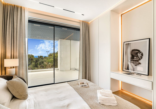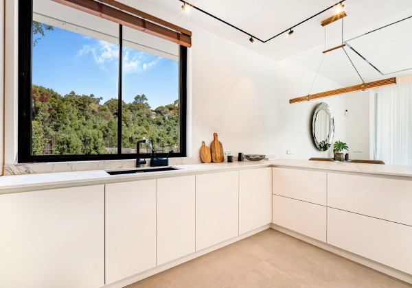 Strategically positioned on an elevated site facing south, the villa boasts spectacular views of the Mediterranean Sea and the iconic La Concha mountain, filling the interiors with natural light throughout the day.