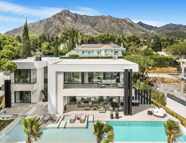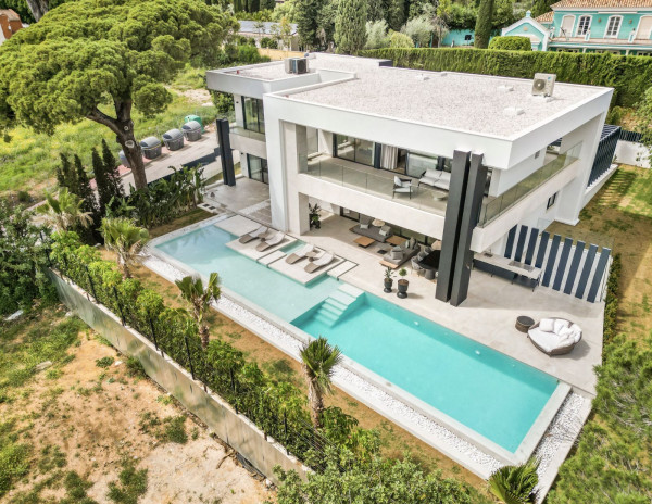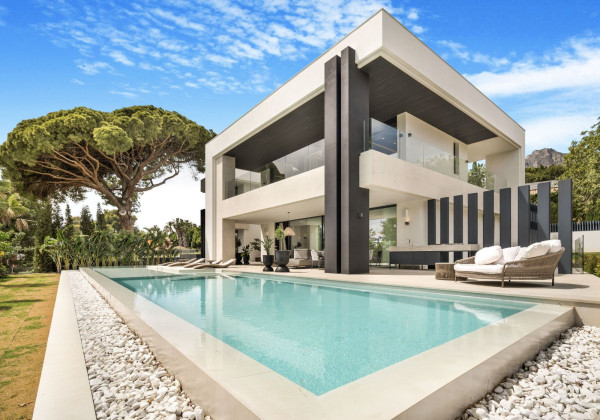 Welcome to this stunning brand new 5-bedroom luxury villa in the heart of Marbella's coveted Golden Mile, specifically in Rocío de Nagüeles. This exclusive property seamlessly blends elegant design with modern amenities, offering unparalleled luxury living in a prime location.