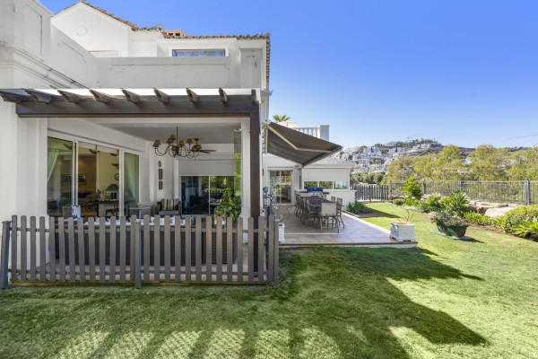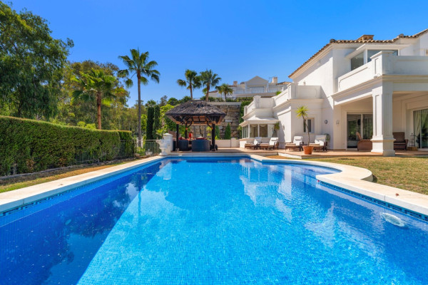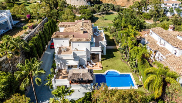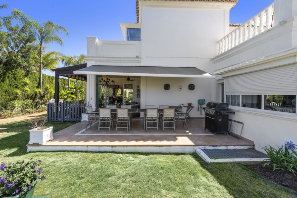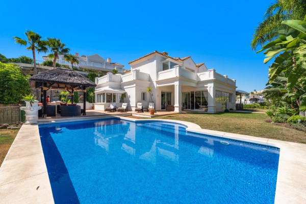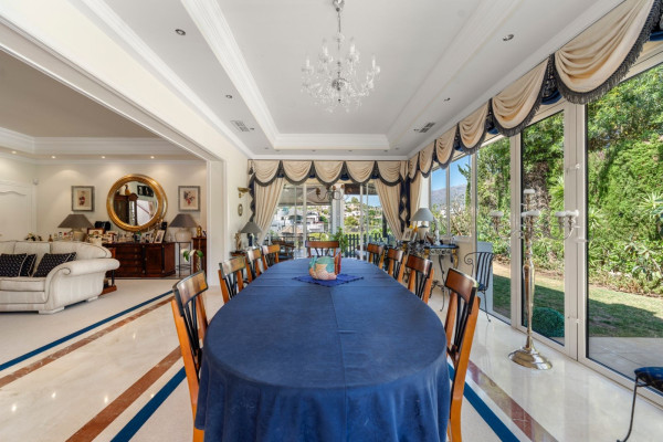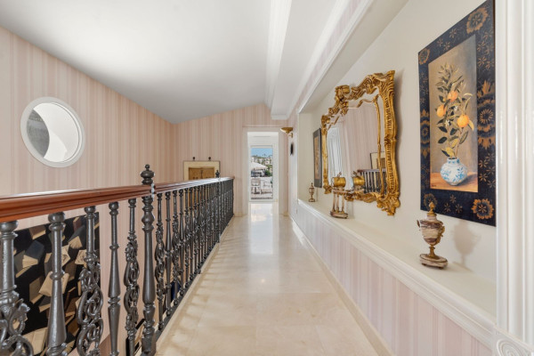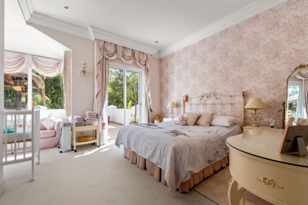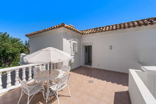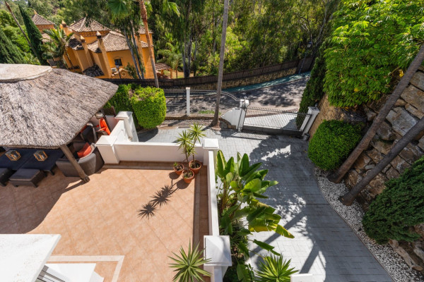 At the one end of the dining area there is direct access out onto a lengthy terrace which gives even greater views across to La Concha and offers plush seating in the fresh air, all shaded from the glaring summer sun. Here you can also find an alfresco dining table for ten kept company by a large barbecue, all of which can be accessed from the kitchen. This terrace leads straight out into the gardens where you can stroll to the other side of the property to where the swimming pool is located in one corner. Keeping it company are several sun loungers and another alfresco relaxing zone set in the shade under a polished gazebo - perfect for afternoon cocktails in the cool!