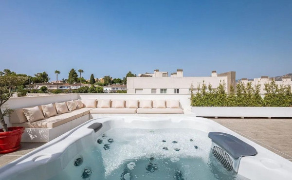 Located in a recently built development, in a prime position just steps from the center of San Pedro de Alcántara, this elegant penthouse combines modern design, comfort, and an unbeatable location, surrounded by all amenities: charming cafés, supermarkets, pharmacies, and schools.