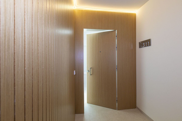 The apartment extends across 256 m², with 128 m² of refined interiors and a 105 m² terrace that blurs the boundaries between indoor and outdoor living. The layout is designed to balance relaxation and entertainment, featuring three spacious bedrooms, two of them with en-suite bathrooms, alongside an additional guest bathroom. Each space is crafted to maximize light and views, while providing residents with privacy and convenience.