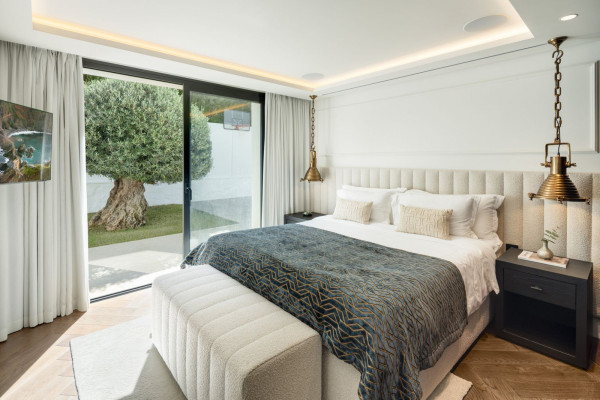 Striking elegant modern villa for sale in the heart of Nueva Andalucía, one of the most prestigious and sought-after residential areas on the Costa del Sol. The property blends contemporary Mediterranean style with high functionality and superior build quality. Positioned to enjoy serene sea views and a custom-designed pool, the villa offers a lifestyle of privacy, comfort, and sophistication in a location prized for both tranquility and convenience.
